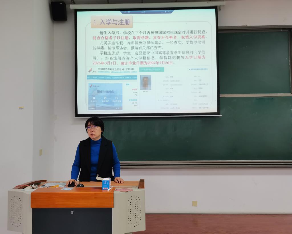 其次,继续教育学院教师叶志华就学籍、课程学习、毕业、学士学位等有关内容以及安全教育进行讲解,指导学生清晰了解从入学、学习到毕业各个环节的事项。