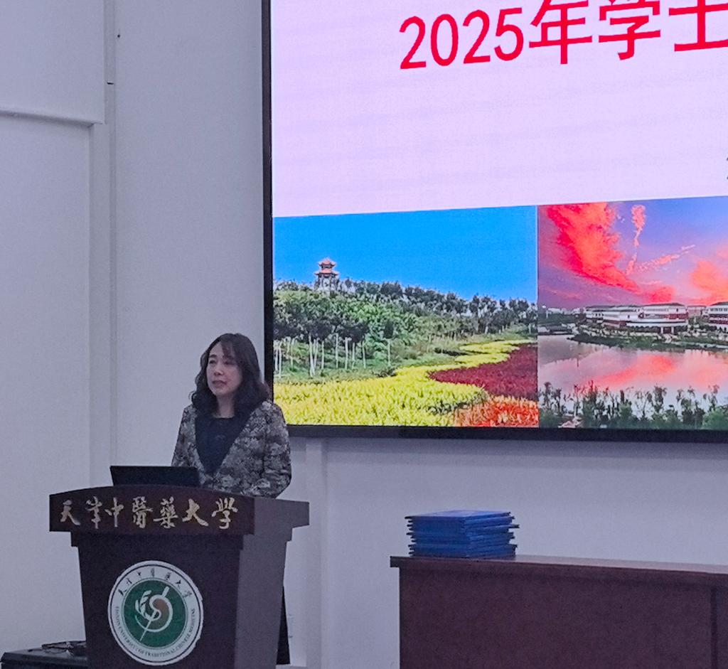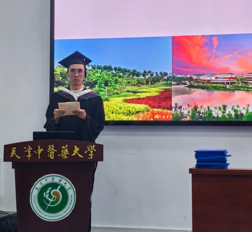 继续教育学院直属党支部书记东晓明为毕业生送上临别赠言与祝福。表示求学之路上你们坚守进德修业,继承创新的校训,以厚朴之心宽厚待人,以茯苓之性沉淀自我,以连翘之勇直面挑战,最终收获了知识的硕果,你们每一位都是中医药事业中不可或缺的星光。她向毕业生提出三点殷切希望:一要坚守仁心,敬畏生命;二要守正创新,勇担使命;三要淡泊明志,深耕不辍。勉励毕业生带着天中人的自信与担当,以青衿之志报效家国,以丈量星海之志探索未知,为健康中国建设贡献青春力量!