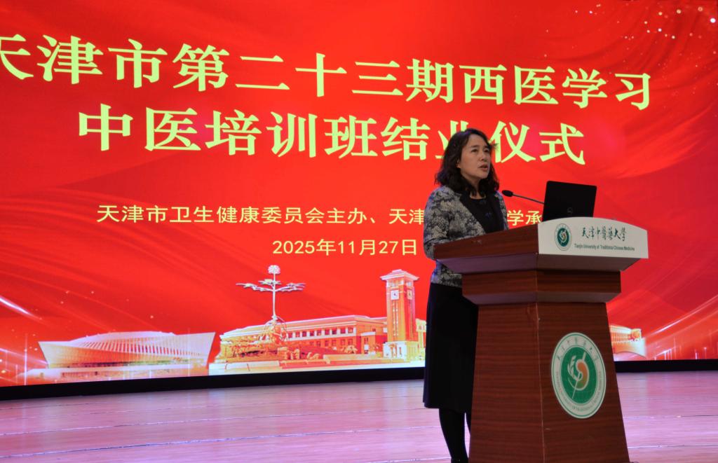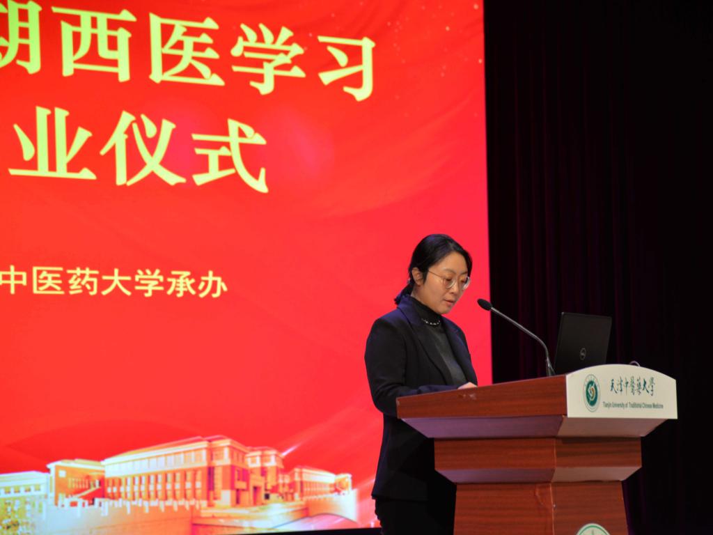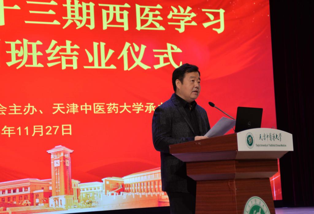 在天津市卫健委的指导下,在校党委的大力支持下,我校在全国率先开展西医学习中医人才培养,至今已举办32期西学中培训班,培养学员3000余人,为天津市乃至全国的中西医结合卫生事业及人才队伍建设作出重要贡献。今后,我校将推进学校非学历继续教育质量,拓展教育服务范围,为推动社会健康事业,提高天津市的中西医结合诊疗水平做出新的贡献。