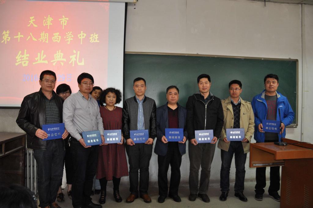 3月29日下午,由天津市卫生计生委与我校联合举办的“天津市第十八期西学中培训班”在我校举行结业典礼。副校长周桂桐教授、市卫生计生委中医处裴乃嘉处长、郭翰林老师,及继续教育学院全体教师出席。