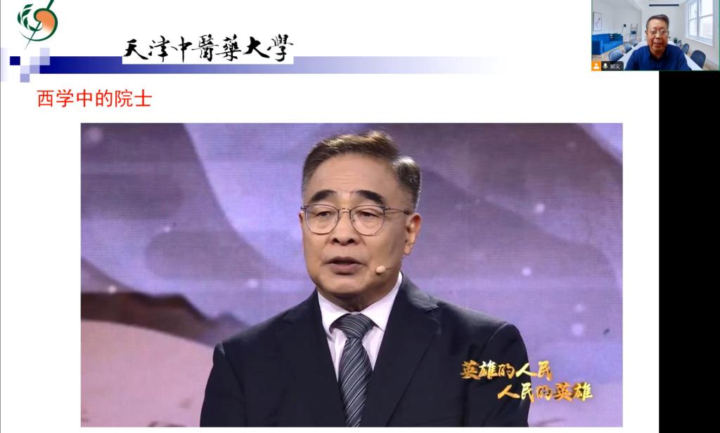 首先,副校长郭义教授作线上开班动员讲话,代表学校对学员的到来表示热烈欢迎,回顾了西学中历史沿革及政策支持,介绍了学校发展概况。一朝天中人,一生天中情,勉励学员们珍惜机会,潜心钻研,以国医大师吴咸中院士、张伯礼院士等学贯中西的杰出人才为榜样,真学、真信、真用,将中医的思维模式、辨证论治方法与现代医学相互融合,真正做到中西医结合,不断提升中医药健康服务能力和临床诊疗水平,推进中医药继承创新。