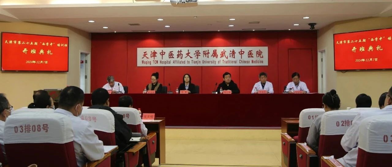 为进一步促进我市中西医结合事业发展,加强中西医结合队伍建设,满足各级医院西医学习中医的需求,解决学员路途遥远的实际困难,经天津市卫生健康委员会批准,由天津市卫生健康委员会与天津中医药大学、天津市武清区中医医院(天津市西医学习中医培训建设基地)联合举办的“天津市第二十五期西学中班”于12月7日正式开班。天津市卫生健康委中医综合处处长苏菁、天津中医药大学继续教育学院院长马云伟、武清区卫健委主任徐迎侠、武清中医院领导班子成员出席开班典礼。