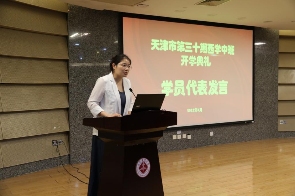 天津医科大学第二医院傅德慧作为学员代表发言,表达了对参与西学中培训的荣幸与期待。她表示,作为一名西医临床医生,深知中西医结合在疾病治疗中的独特价值,此次培训将是一次宝贵的学习机会。她代表全体学员郑重承诺:将以饱满的热情投入学习,严格遵守培训纪律,认真完成各项学习任务,努力将中医智慧与现代医学相结合,为患者提供更全面、更有效的诊疗服务。